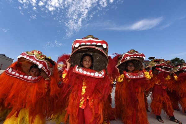 正在排练“华盖双狮舞”的江西泰和县万合中心小学的学生(5月15日摄)。 2015年以来,万合中心小学全方面推动素质教育,展开“非遗传承摇动校园”特征活动,将集功夫、杂技、音乐、舞蹈为一体的“华盖双狮舞”列入校园的民间传统文明课程,让这一非遗代代相传。“华盖双狮舞”撒播于泰和县万合镇华盖山村,距今已有700多年的前史,2013年被列入江西省非物质文明遗产维护名录。