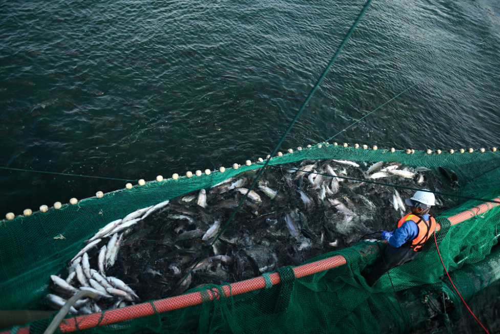 在严控饲养密度的一起,每个网箱下面还设有粪便收集器、水下清污器等环保设备。“咱们还和环保部门每个月联合展开水质监测。现在龙羊峡水库全年到达国家地表二类水质。”杨旭说,下一步,公司将持续深耕绿色饲养,拓宽国际市场,让龙羊峡的三文鱼(虹鳟鱼)成为我国农产品走向世界的一张亮丽手刺。